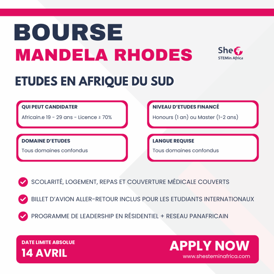 Chaque année, la Fondation Mandela Rhodes offre à une poignée de jeunes Africain·es exceptionnel·les bien plus qu’un financement : un voyage de transformation personnelle et professionnelle. Voici tout ce que tu dois savoir pour candidater avant le 14 avril 2026. Qu’est-ce … Read More